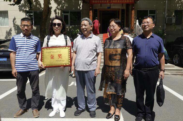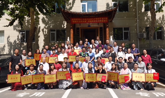 河北省民俗文化協會會長袁學駿(中)、河北邢台天河山景區董事長崔惠君(右二)與本屆「今日織女星」金獎獲得者合影留念