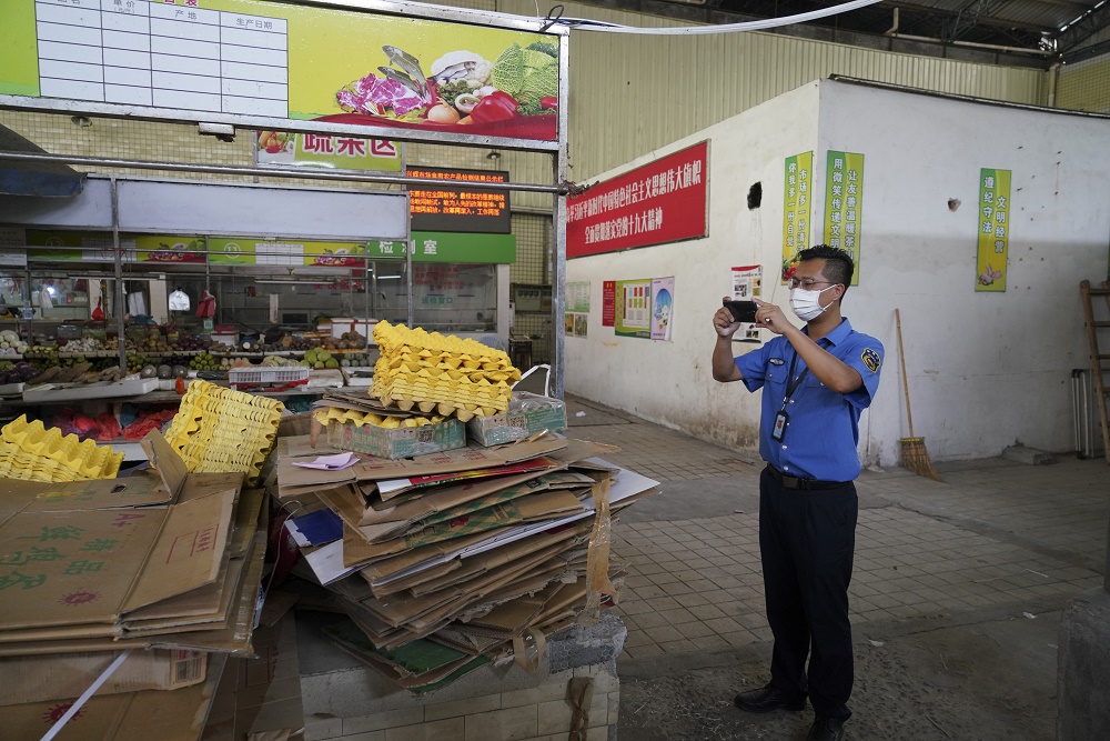 當天會議剛結束,4名東莞好人志願服務隊茶山文明風尚分隊隊員和網格員立刻分片區開展聯合巡查。在塘角村的農貿市場,隊員們發現現場存在車輛佔道和衛生環境欠佳等情況,立即分別對車主、市場管理方進行反饋並督促整改。市場管理工作人員陳先生說:「目前,市場每天都會清掃地面,一般每3天一次大清洗。我們也會持續督促檔主,一起做好市場衛生。」