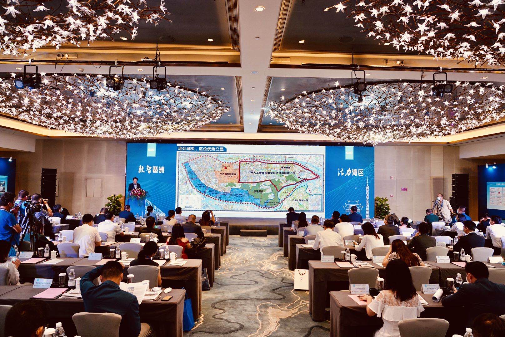 廣州人工智能與數字經濟試驗區琶洲核心片區推介會由海珠區委、海珠區人民政府承辦,以「數智琶洲 活力灣區」為主題,當天,海珠區與聯想、奇安信等一批龍頭企業牽手,為琶洲產業集聚和擴大朋友圈增添新力量,涵蓋人工智能、數字經濟、大數據、網絡安全等多個產業。同時,京東、聯想、阿里釘釘、蘇寧、滴滴、奇安信、啟明星辰、逸仙電商等70餘家國內外知名企業齊聚於此,共同展望發展前景,探討發展新路徑。