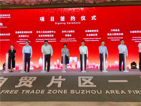 同時現場,100個優質項目落地,簽約的項目有:瑞士SGS智能汽車網聯測試中心、德國蔡司工業測量解決方案中心、比利時優美科汽車催化劑中國區總部、京東工業品運營中心等16個總部及功能中心項目,蘇州沃芽自動駕駛示範項目、宜明基因藥物CDMO項目等8個科技創新項目,仲量聯行蘇州分公司、亞太(集團)會計師事務所蘇州分所等8家專業服務機構,中銀國際QFLP股權投資基金項目、正邦集團跨境投資總部等8個投資平台及跨境投資項目,元聯藥谷基礎設施投資基金等產業引導不動產基金。這些項目涵蓋總部及功能中心、科技創新、投資平台及跨境投資等不同類別,集中代表了蘇州自貿片區片區產業領域的最新成果和發展方向。