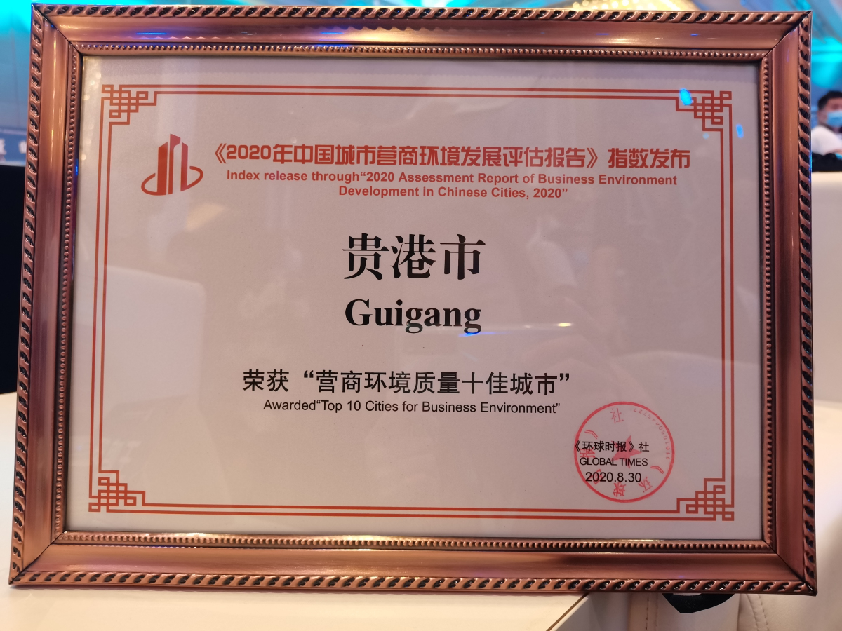 【香港商報網訊】8月30日,在北京召開的第二屆中國國際化營商環境高峰論壇暨《2020中國城市營商環境投資評估報告》發佈會上,廣西貴港市榮獲「2020年中國營商環境質量十佳城市」,這是貴港營商環境連續三年獲得重量級榮譽。此前,貴港市已陸續獲得「2018年度中國十佳營商環境示範城市」、「2019中國(區域)最具投資營商價值城市」等榮譽。