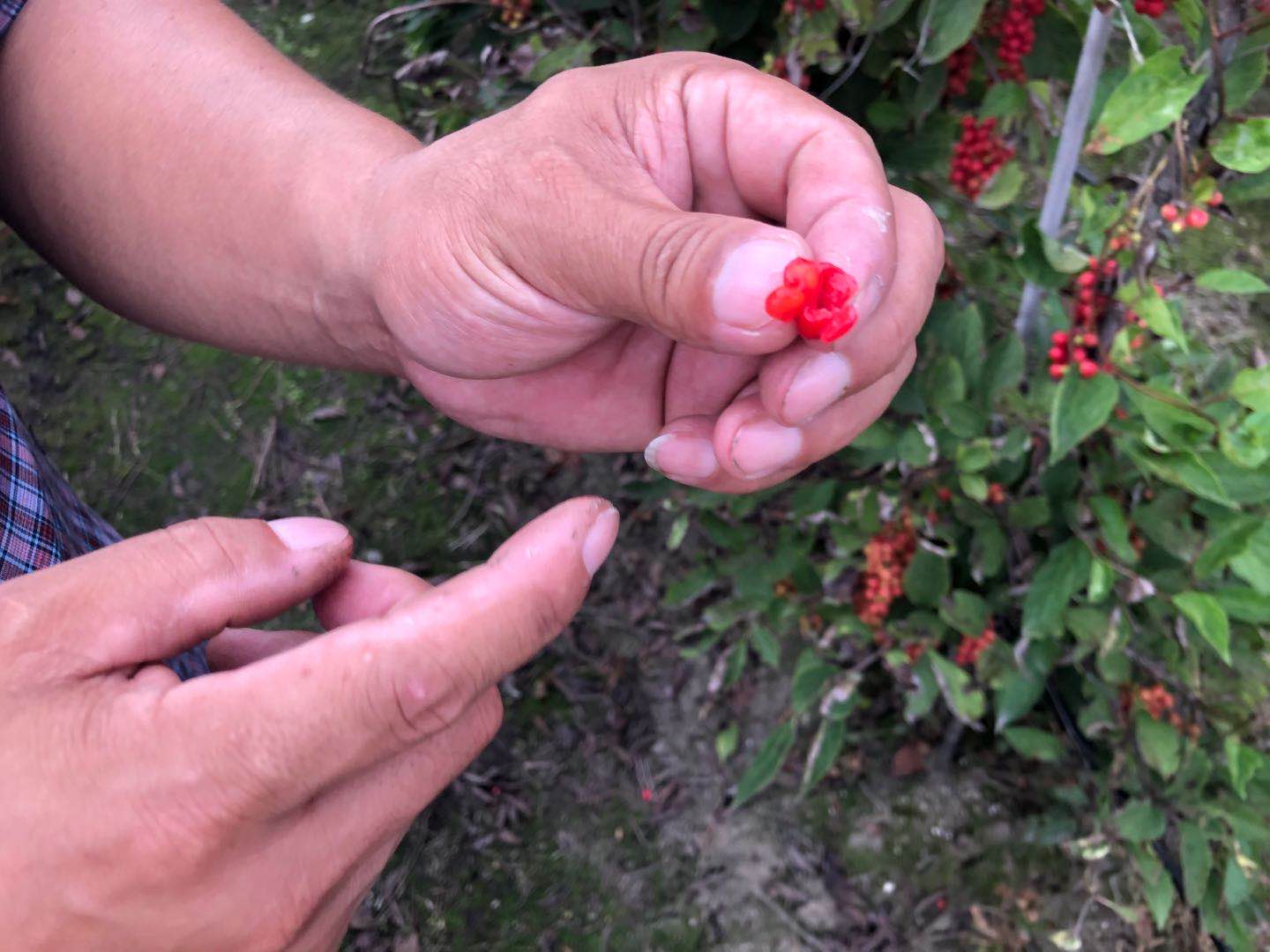 符景林在園區里摘下一串紅彤彤的五味子開心的告訴記者,五味子以乾燥果實入藥,葉片入茶,具有收斂固澀,益氣生津,寧心安神的功效。湯原縣的種植氣候、土壤優勢使五味子莖皮揮髮油含量和果實出籽率高於其他種植地區,且可以種出罕見的兩籽五味子果實。