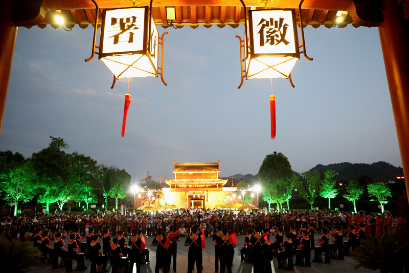 8月29日晚,國家歷史名城、中國四大古城之一的安徽黃山市歙縣徽州古城非遺夜市如期進行,60多名城鄉婦女身穿旗袍表演《盛世國風》、《中國美》,給古城夜市增添美景。