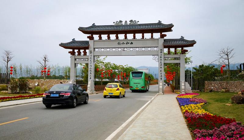 西和村在景觀設計中把鄉土地域文化貫穿其中,將民間傳統文化與現代休閒風格相結合,創新性地展示本土的客家文化。通過對鮮花、高大喬木、花灌木、草坪等的合理規劃配置,營造出人與自然和諧共處、共融共生的生態人文景觀。