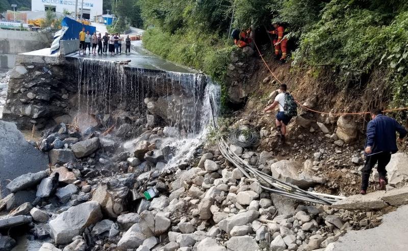 九環線平武至白馬路段多處道路被洪水沖毀