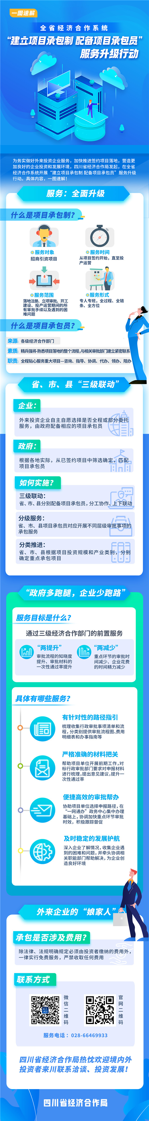 四川省經合局相關負責人介紹,「建立項目承包製、配備項目承包員」服務升級行動是在紮實抓好招大引強、招新引優的同時,根據招商引資項目落地註冊、立項審批、開工建設、投產運營等各環節需要,從全省經濟合作系統中抽調精兵強將,成立專班、確定專人,全過程、全鏈條、全方位開展諮詢、指導、協調、代辦、領辦、陪辦等各類無償服務工作,集中力量打通企業投資擴能服務鏈,變「企業跑路」為「政府跑腿」,把外來企業「娘家人」形象深入到客商心坎里,把招商、安商、+穩商落實到具體行動上。