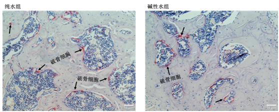 鹼性天然礦泉水組大鼠破骨細胞數量明顯少於純淨水組大鼠,相差20.36%