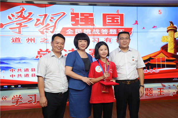 決賽現場分為鋒芒畢露、勇者相逢、巔峰對決三個環節,內容以「學習強國」全國平台挑戰答題為主。10名選手經過才華角逐、智慧較量,最終來自道州玉潭(東陽)學校的13歲初一女生張欣在50分鐘之內,以答對1281題全部通關的優異成績摘奪桂冠,驚艷全場。