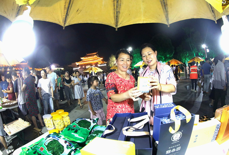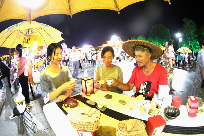 當日,非遺夜市舉辦戲曲演唱專場,徽劇、黃梅戲、越劇、京劇輪番登場,悅耳的戲劇唱腔引來參加夜市的遊客和市民,夜市紅火戲曲動聽,非遺產品展銷成了戲曲伴奏的舞臺,戲精彩遊客來,古城夜色添光彩。(吳建平 吳敏)