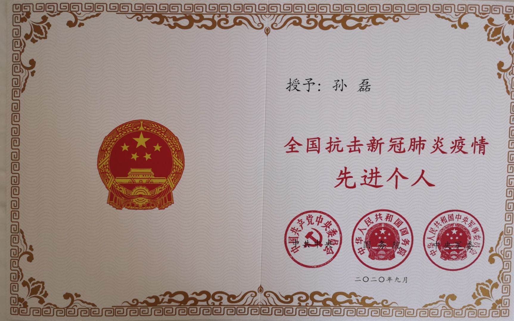 【香港商報網訊】9月8日10時,全國抗擊新冠肺炎疫情表彰大會在北京人民大會堂隆重舉行。中共中央總書記、國家主席、中央軍委主席習近平將向國家勳章和國家榮譽稱號獲得者頒授勳章。哈爾濱市第一醫院援鄂醫療隊員、重症醫學科孫磊受到表彰。