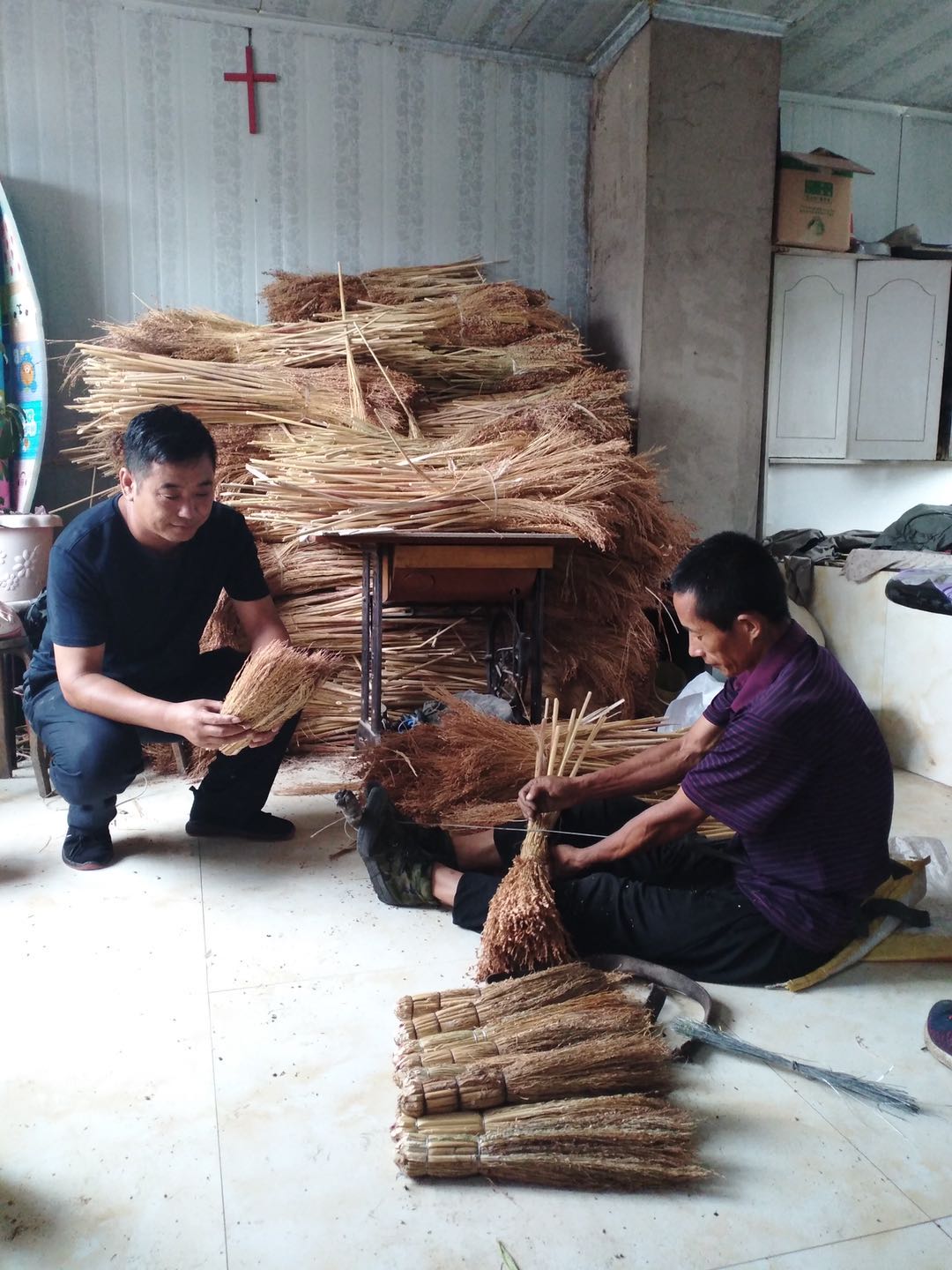 萬事開頭難,做什麼?很長一段時間成了王殿仁的心病。在工作隊走訪時,了解到他有自己創業增收的想法,他懂養豬,就幫助他採購6頭豬,養了一頭母豬,兩頭「後備」,三頭育肥,很快發展壯大,每到年關節日,自己養的笨豬都會在本村銷售一空;他懂孵化,就幫他聯繫採購優質種蛋,在家裏孵化雞雛、鴨雛,僅一個夏天就孵化出500多隻雛,被訂購一空。但這都是小打小鬧,季節性限制大,無法持續增收。在與他的進一步溝通中,了解到他還有扎笤帚的手藝,每到閒時,都會紮上幾把,送給親戚朋友使用。笤帚每家每戶都會使用,市場前景廣闊,並且勞動強度不大,可以利用業餘時間,不耽誤正常耕作,這與工作隊的想法一拍即合。