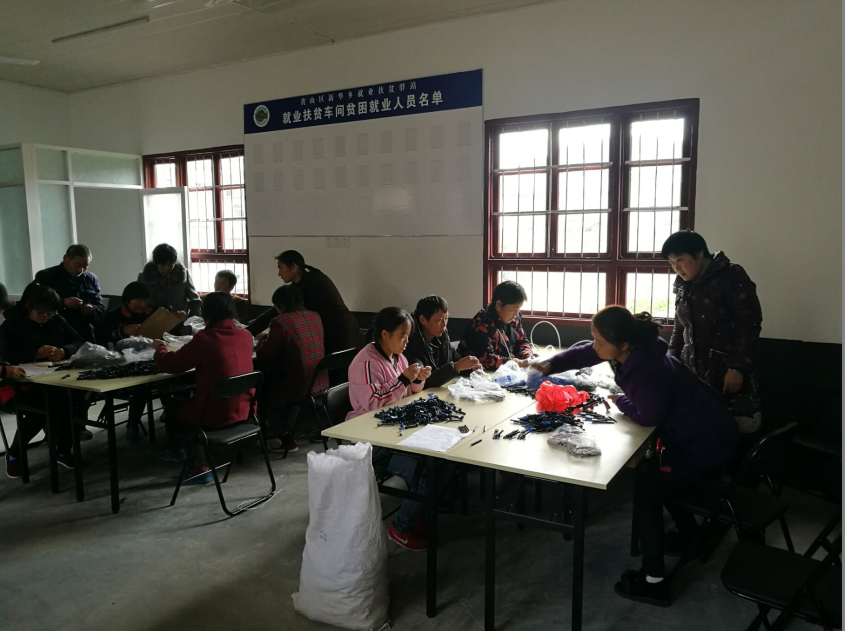 曹村村裏有不少中年婦女留守在家照顧老人和小孩,走不開。為了提高這些人的收入,扶貧工作隊和黃山太平經濟開發區的宏毅科技有些公司取得聯繫,利用本村廢置的學校教室,辦了一個扶貧車間,讓這些婦女到車間上班,這個圓軌組裝活手續簡單,容易上手,而且不限定上班時間,很受婦女們歡迎。扶貧車間吸呐就業人員11名,其中貧困勞動者4名,每年農務收入約20萬元……