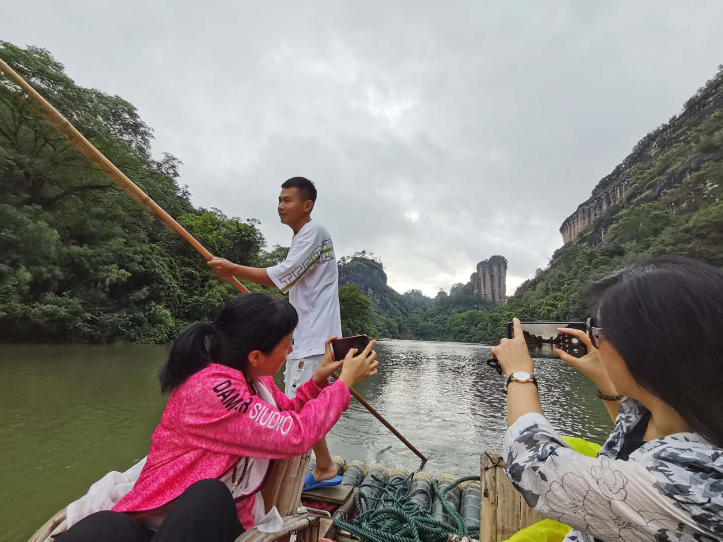 九曲溪發源於武夷山脈主峰——黃崗山西南麓的溪流,全長約9.5公里。澄沏清瑩,經星村鎮由西向東穿過武夷山景區,盈盈一水,折為九曲,山挾水轉,水繞山行,每一曲都有不同景致的山水畫意。澳門報採訪主任鄭燕清表示,以前瞭解武夷山的“丹山碧水”是在資料上得知的,“丹山”是指它有紫紅的、淺絳的、赤褐的斑駁陸離的各色峰岩,“碧水”便是武夷山九曲溪碧綠碧綠的泉水。現在身臨其境才更感受到大自然的鬼斧神工,覺得一到了這個地方就愛上了這裡,下次一定要帶朋友過來好好的多玩幾天。