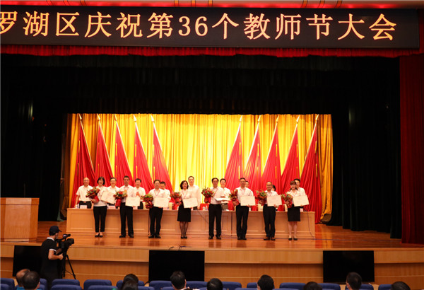 【香港商報網訊】9月10日上午,深圳市羅湖區召開慶祝第36個教師節大會。會議表彰了20個先進單位、1647名先進個人以及208名滿「三十年教齡」人員,現場為教育先進單位、區2020年年度教師及提名人選、三十年教齡教師、功勳園丁、優秀督學、優秀視導員、先進教育工作者、優秀班主任和優秀教師代表頒獎。羅湖區委書記羅育德、區長劉智勇向全區廣大教師致以節日的祝賀。羅湖區人大常委會主任熊國偉、區政協主席吳裕中、深圳市教育局副局長王水發等出席大會。