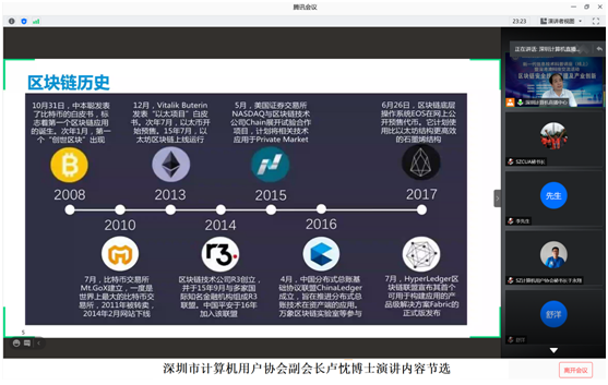 因此,計算機用戶協會邀請協會副會長盧忱博士再次開講《區塊鏈安全技術原理及產業創新》,讓大家了解區塊鏈基本知識,並且了解區塊鏈的安全技術,同時深入講解了如何依靠區塊鏈進行產業創新。