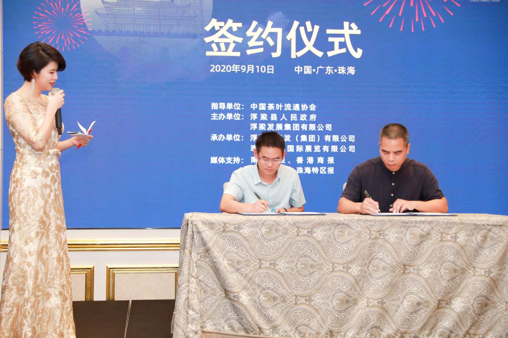 【香港商報網訊】2020中國(珠海)國際茶業博覽會期間,由江西省浮梁縣人民政府、浮梁發展集團有限公司主辦的「浮梁茶宴」10日成功舉行。廣東省農業廳原副廳長潘嘉念,浮梁縣縣委副書記、縣長程新宇,浮梁縣副縣長周民主,珠海市商務局四級調研員沈桂林,廣東省茶文化研究院院長林楚生,深圳前海華人互聯網金融集團董事長趙財強,珠光控股集團總裁劉捷,廣東邁科醫學董事長鄭新波等嘉賓出席活動。