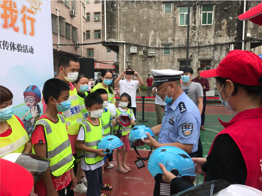 活動中,宣傳民警為居民家長小朋友們普及交通安全知識,講解「一盔一帶」騎乘人員規範佩戴安全頭盔、駕乘人員規範使用安全帶等知識。現場還設置了飛行棋安全知識問答、安全你畫我知等遊戲攤位,通過有獎問答環節讓社區小朋友、家長們在參與中學習交通安全知識,為答對題目的小朋友頒發安全頭盔及小禮包。