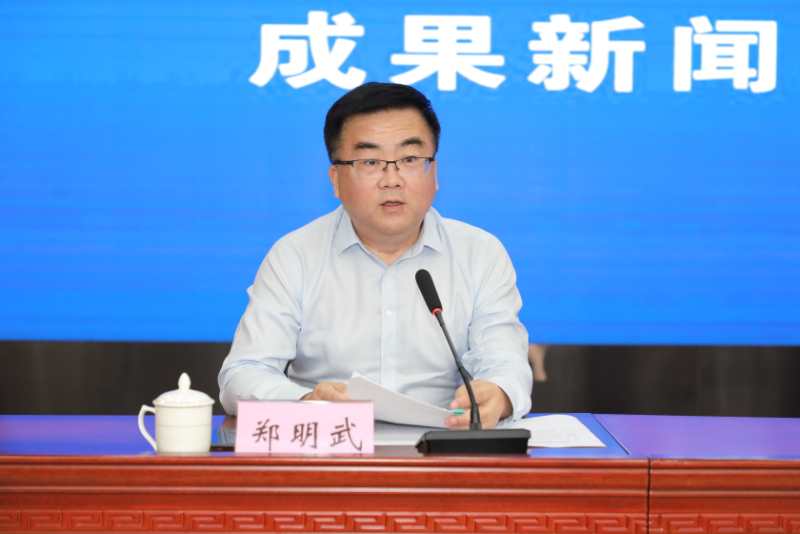 安徽省委宣傳部副部長、省政府新聞辦公室主任鄭明武主持發佈會(孫軍/攝)