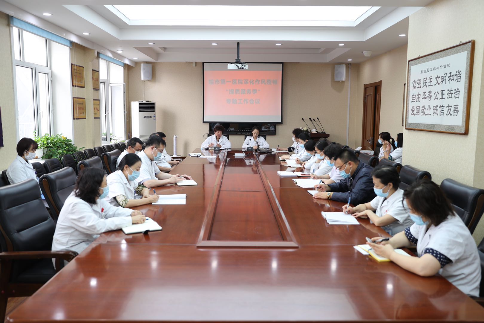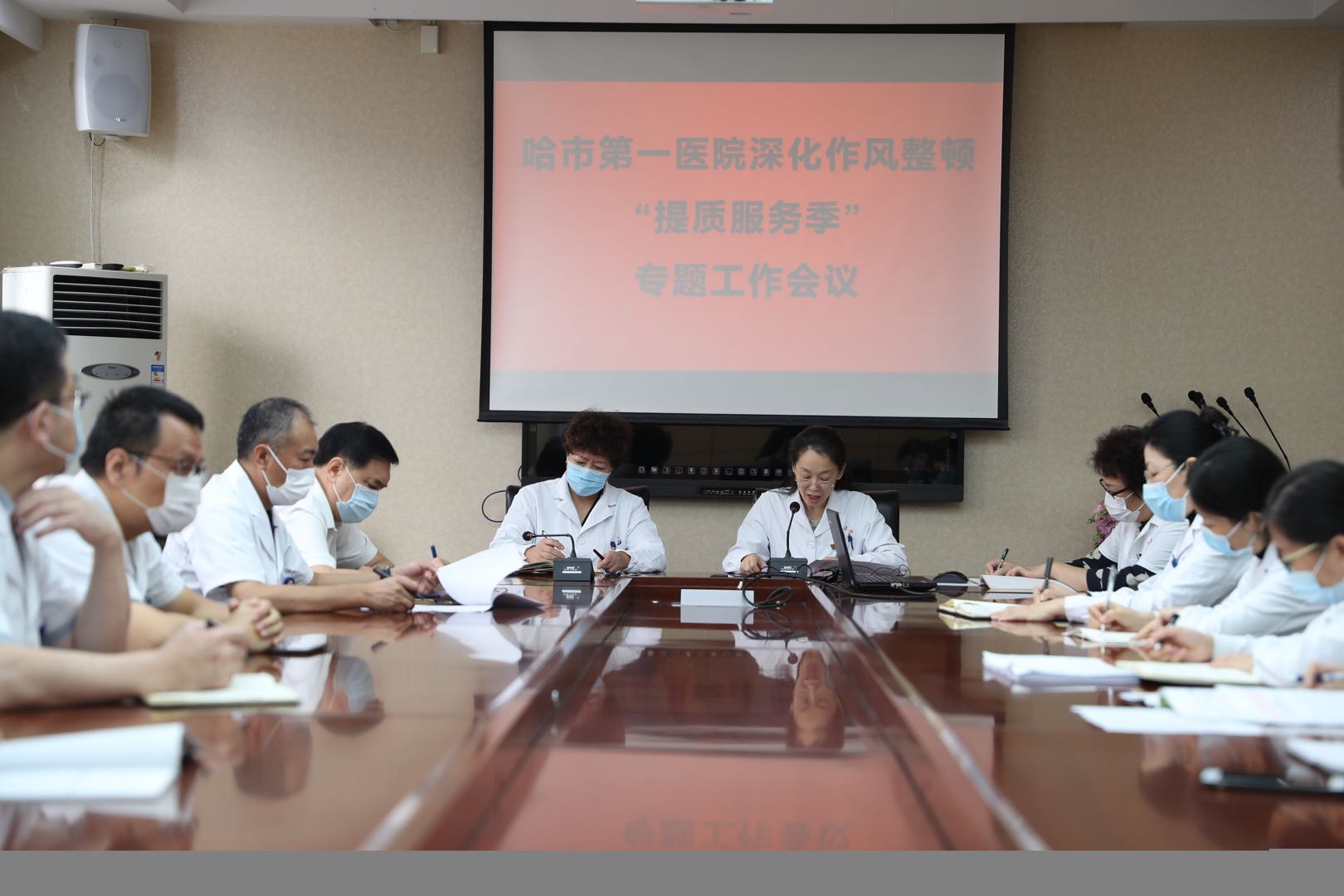 【香港商報網訊】近日,具有百年歷史的哈爾濱市第一醫院先後召開「作風整頓、行風建設、創城工作、幹部培訓」會議,深入貫徹落實省市專題會議上提出的工作要求及抓好問題整改的指示批示精神,以其他行業暴露的問題為戒,舉一反三,自查自糾。同時,院黨政班子決定在全院範圍內開展「提升服務季」行動。黨委錢朝霞書記、李虹院長分別講話,圍繞始終樹立「人民至上」的理念,進一步落實中央八項規定精神,深入貫徹習近平總書記關於糾正四風、加強作風建設重要批示精神,嚴守疫情防控工作成果,以「促行風、強作風、塑醫風」為目標,打造風清氣正的醫療環境,努力提升人民群眾就醫看病的獲得感和滿意度,進一步深化作風整頓、優化服務流程、提升醫療服務質量,對各部門及全院黨員幹部職工壓實責任目標並明確具體要求。