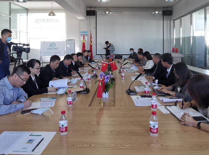 和糧農業有限公司董事長張芳向走訪調研組介紹了企業經營發展和產業佈局情況,參觀公司總體展示沙盤、生產車間及成品展示等,參觀後組織相關企業一併召開了座談會。