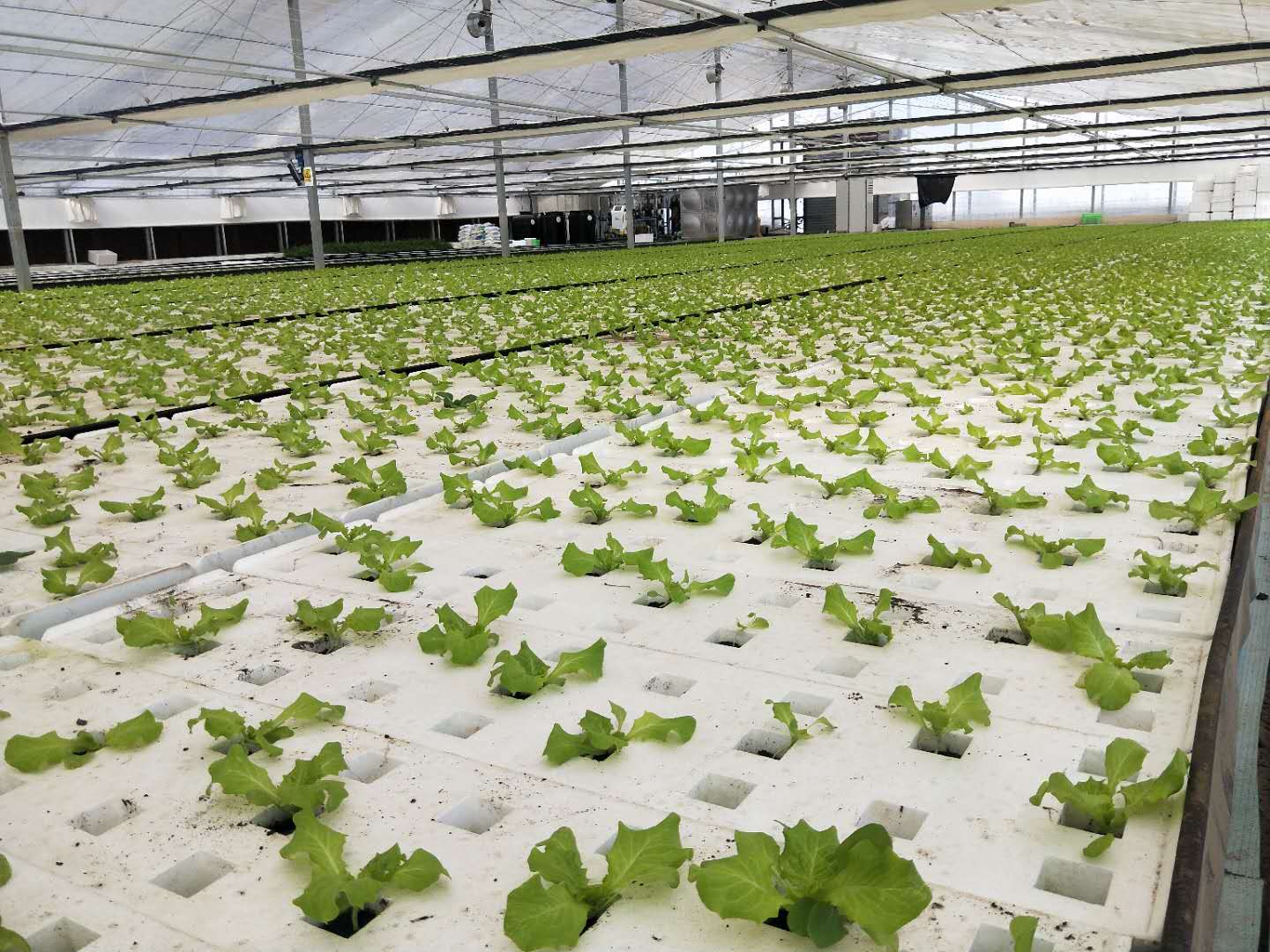 水培葉菜種植系統主要由水肥一體化培養床、梯形孔泡沫浮板、營養液等設備組成。將幼苗同基質放入泡沫浮板上的梯形孔即可完成種植,種植密度高且省去了傳統農業中的扶壟及除草等種植環節。