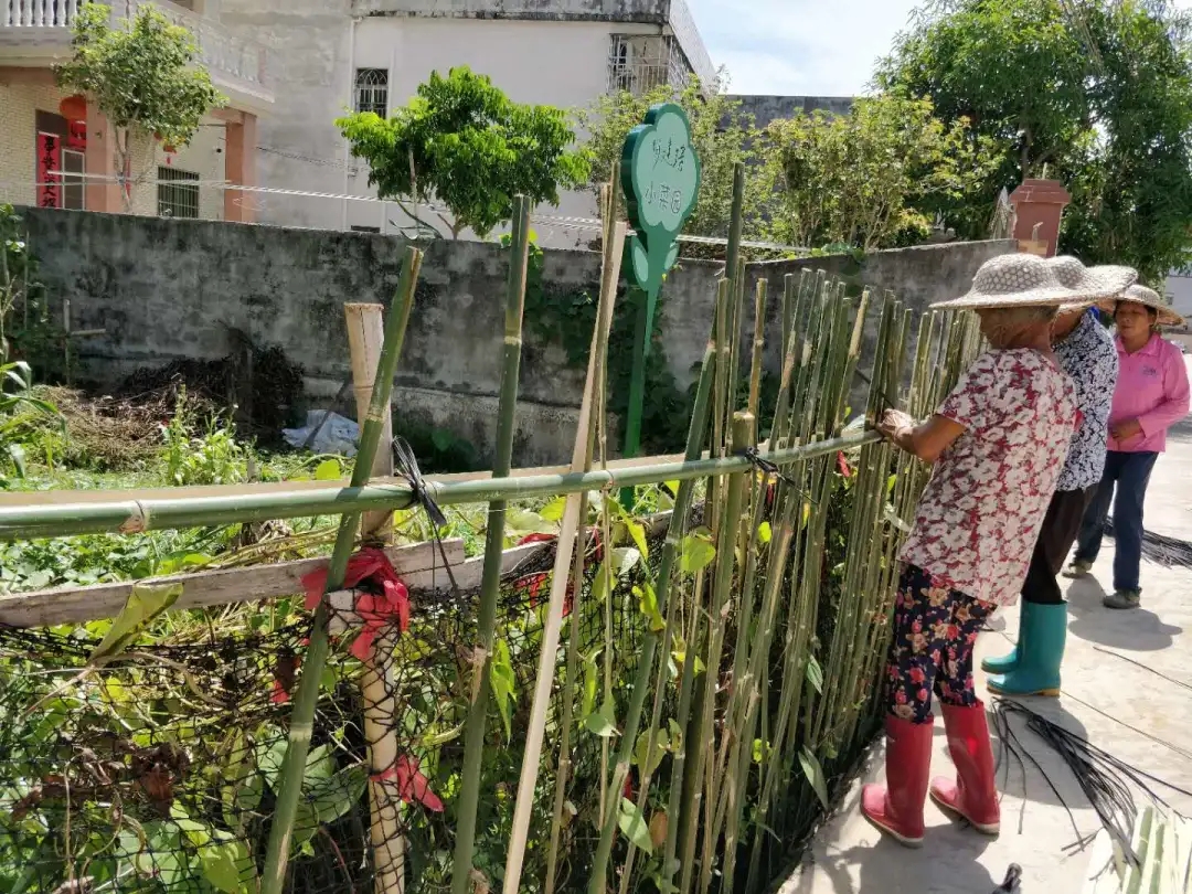 在佗城鎮勝利村,村里許多閒置土地改造成了小菜園,菜園裏蔬菜長勢喜人,生機勃勃。村民沙秀蘭和幾個鄰居一大早便起來忙活了,她們加工製作了竹子,用繩子將其統一整齊地編制固定起來,不一會兒,一個具有鄉村特色的竹籬笆牆便成型了,一眼看去更加整潔美觀。「我們用籬笆,把菜園子弄得漂亮一點,看起來也更舒服。」沙秀蘭笑着說道。勝利村是佗城鎮致力改善農村人居環境,打造美麗鄉村的一個縮影。