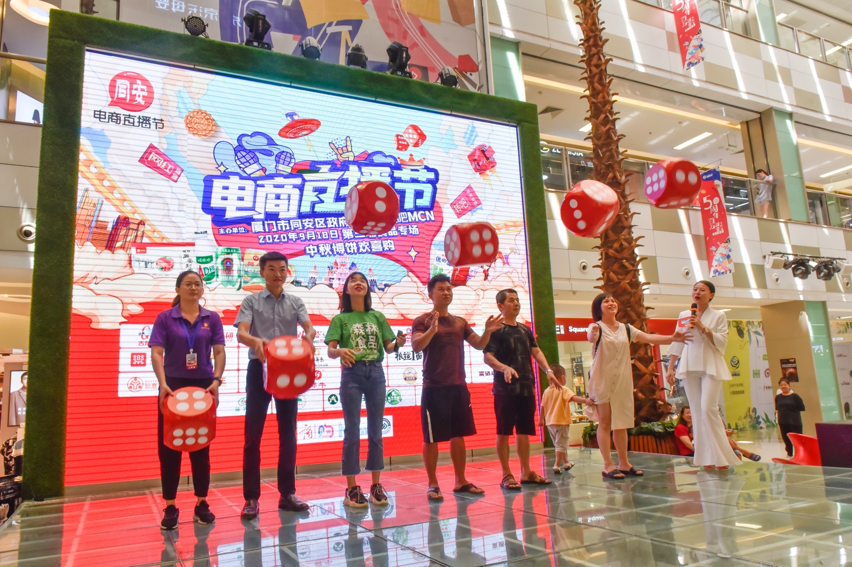【香港商報網訊】9月18日上午,2020年同安電商直播節第三場食品專場活動在同安樂海城市廣場熱鬧開幕,現場1000份豆漿免費送,銀祥食品、娃哈哈飲料、古龍罐頭、新盛洲食用油、甘肅臨夏州康樂縣的西部土特產等上千種美食線上線下同步讓利促銷……適逢中秋佳節將至,本次電商直播節食品專場還融合了閩南特色中秋博餅,邀請市民享受一場中秋博餅歡喜購物盛會。