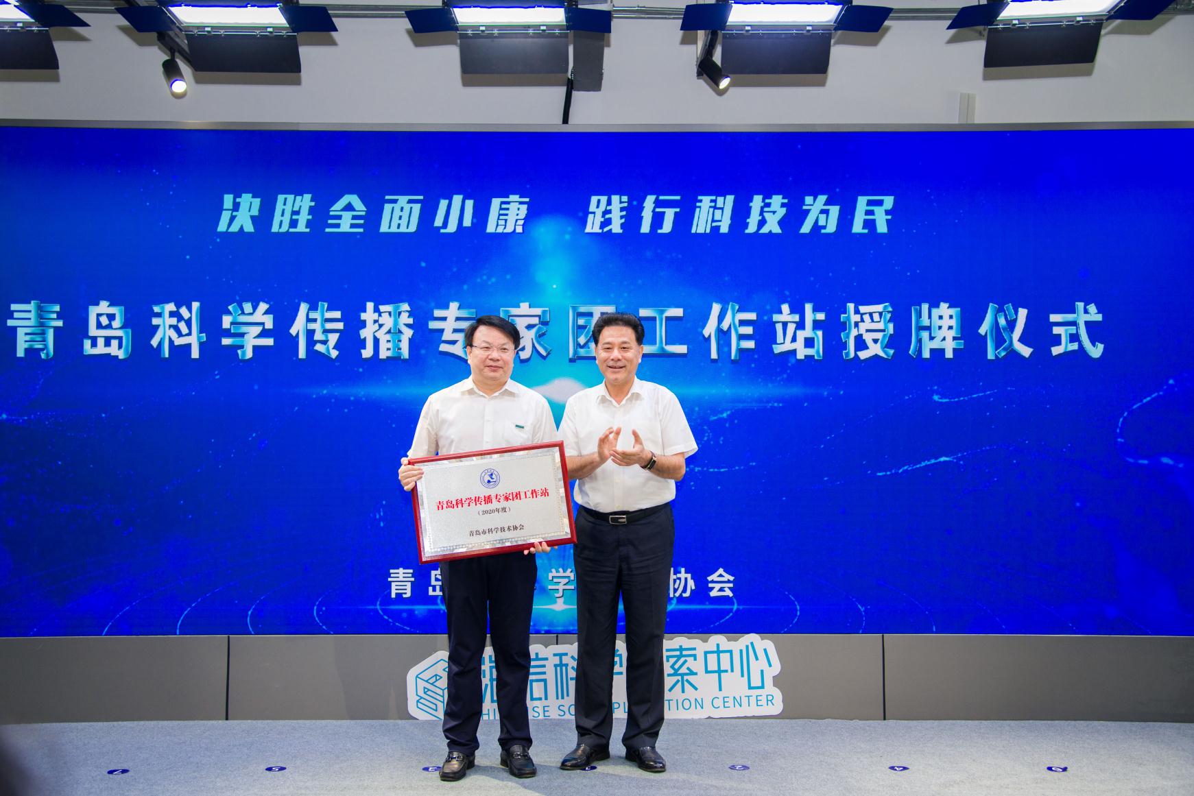 青島市科協主席王建為海信科學探索中心授予科學傳播專家團工作站牌匾