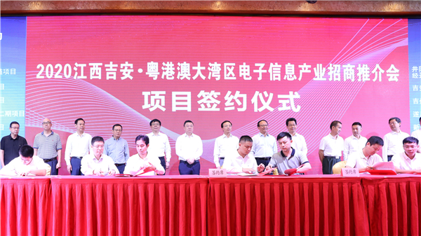 【香港商報網訊】記者 郭美勤 報導:向大灣區借力,為老區謀發展。9月19日,在2020江西吉安·粵港澳大灣區電子信息產業招商推介會上,吉安簽下62個項目,均為電子信息產業上下游產業鏈和供應鏈項目,簽約金額超513.1億元;其中投資20億元以上項目11個。通過前期洽談與推進,該市還與大灣區17個人才(團隊)、企業達成人才引進與項目合作協議,另有10個文旅項目總金額達118.7億元、20個農業產業和農產品產銷對接項目總金額達83.56億元,都將在當天下午舉行簽約儀式。
