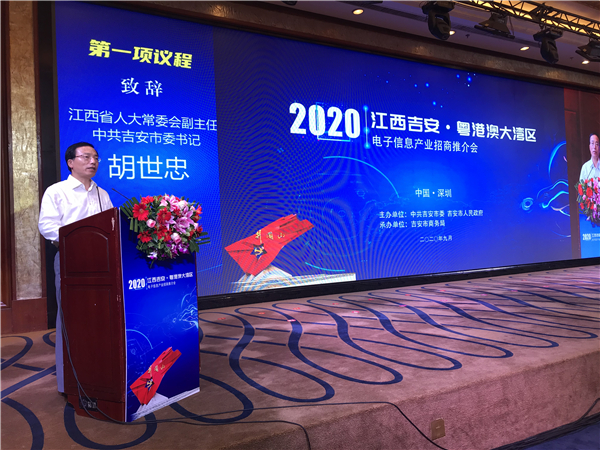 江西省人大常委會副主任、吉安市委書記胡世忠在電子信息產業招商推介會上致辭,吉安市人民政府市長王少玄作電子信息產業主題推介。