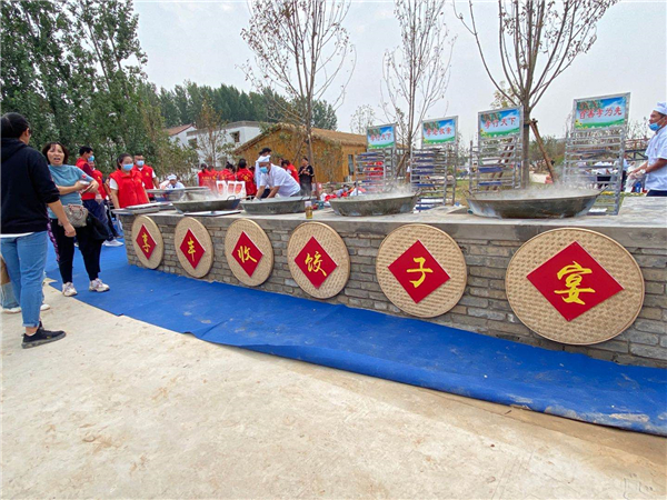 整個慶典圍繞着「慶豐收、曬豐收、話豐收、享豐收」舉行了一系列活動,有農民踩高蹺、劃旱船、舞龍舞獅等歡慶豐收迎小康的喜慶場景,也有種糧大戶、普通農民、貧困戶、駐村第一書記趕露天市集,曬出勞作後的豐收成果,更有豐收餃子宴。