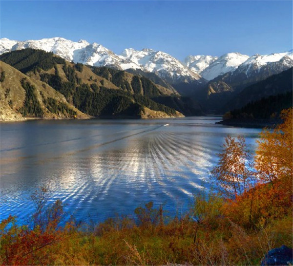 天山天池是以高山湖泊為中心的自然風景區,距烏魯木齊市97公里。景區規劃面積548平方公里,可分為「大天池北坡遊覽區」、「大天池遊覽區」、「十萬羅漢涅般木山遊覽區」、「娘娘廟遊覽區」和「博格達峰北坡遊覽區」。湖水清澈,晶瑩如玉。四周群山環抱,綠草如茵,野花似錦,有「天山明珠」盛譽,是中國西北乾旱地區典型的山嶽型自然景觀。