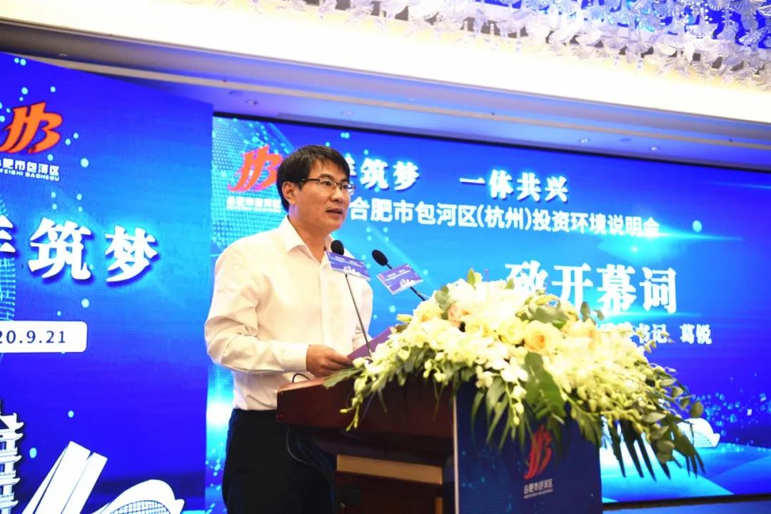 此間,包河區委書記葛銳重點從區位優勢、生態環境、產業基礎三個方面推介了包河,並積極邀請客商來包河投資興業。他說,隨着長三角一體化發展國家戰略縱深推進,特別是習近平總書記親臨安徽考察指導,更是為一體化高質量發展指明了前進方向、注入了強勁動力。
