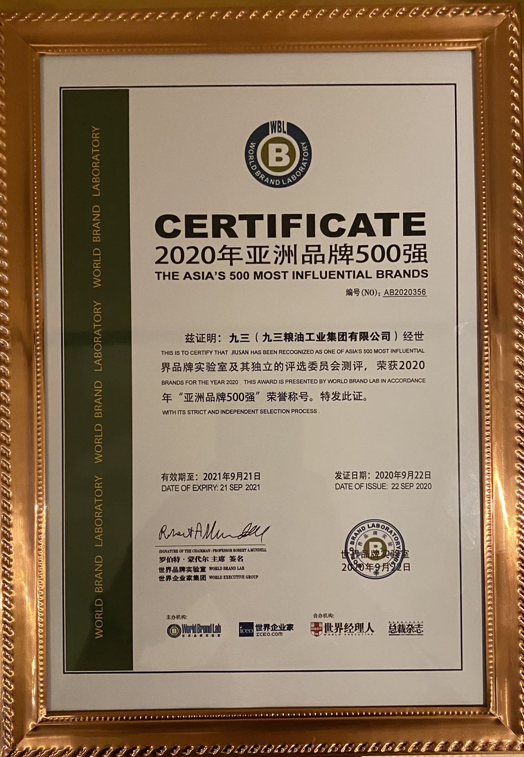 【香港商報網訊】9月22日,由世界品牌實驗室主辦的「2020年亞洲品牌大會」在上海召開。「九三」品牌憑藉着自身實力和影響力榮登排行榜,排名第356位,彰顯了九三集團堅持創新引領品牌可持續發展的品牌戰略。另悉,「北大荒」品牌位列排行榜第90位。