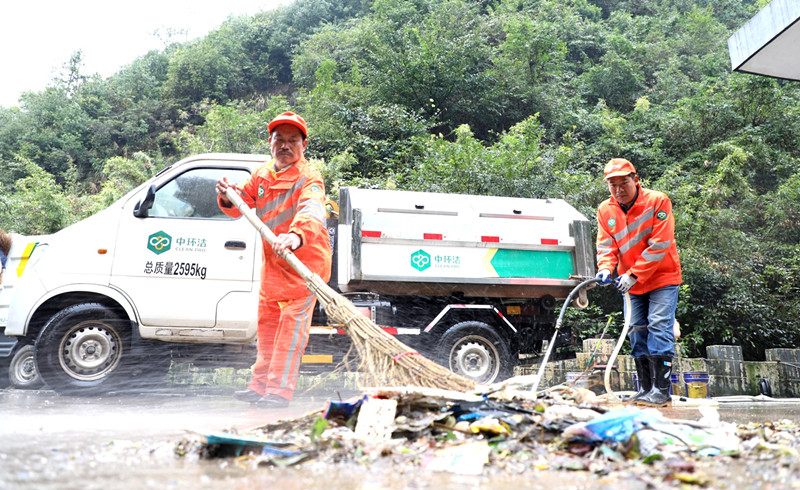 【香港商報網訊】9月22日,安徽黃山中環潔城市環境管理有限公司歙縣項目部的保潔員在北岸鎮瞻淇村進行常規保潔。