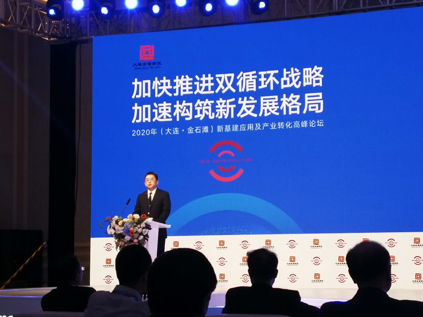 金普新區黨工委書記、管委會主任李鵬宇在致辭中說,作為國家諸多戰略疊加的國家級新區,前瞻謀劃、加快佈局、有效運營新基建,搶佔新一輪產業革命和技術革命的制高點,是金普新區應有的使命擔當。新區將堅持科技拉動,按照產業需求,高水平打造應用產品;將堅持項目帶動,加強統籌謀劃和頂層設計,加大對新基建項目的投資力度;將堅持產業聯動,大力推動新基建主導產業與傳統產業的融合,促進新業態、新產業、新服務發展;將堅持市場推動,構建主體多元、政企協同,收益可期、風險可控的投資運作格局,形成可持續發展的良性模式。