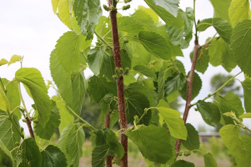 同樣享受到「保底」政策的還有長山鄉長新村村民翟正祥。2017年脫貧後,為了幫助他鞏固脫貧成果,幫扶幹部和村兩委幹部幫助他在自家小園裏栽植了2畝共計300株桑樹,並幫助他同甘南縣果皇公司簽訂了回收訂單,享受每斤桑果保底3.5-4元回收的政策。去年他家的桑樹開始掛果,今年就能夠採摘售賣了。「1畝地能產果300斤左右,以往1斤市場價大概在8塊錢,我這2畝地能賣4800塊錢。關鍵不怕行情不好,有訂單兜底,好好管理果樹就行了。」