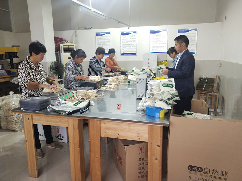 【香港商報網訊】近日,位於皖南休寧縣齊雲山鎮的黃山市鈺農食品有限公司被確定為該縣首批消費扶貧企業館,架起了消費扶貧供需對接的“致富橋”。今年以來,該鎮通過“以購代捐”、“以買代幫”、即時銷售等多種形式,積極為貧困戶打通銷售渠道,並借助企業的電商平臺,推出“線上+線下”同步銷售模式,解決困難群眾農副產品銷售難問題,激發了貧困群眾內生動力,促進了全鎮貧困群眾持續穩定增收。