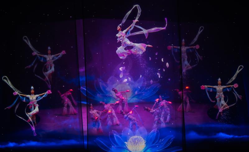 整台演出既有向東西方文明互融互通做出重大歷史貢獻的人物情景短劇《張騫》《行者》《馬可波羅》《鄭和下西洋》等,也有展現中國絲綢柔美飄逸的舞蹈《霓裳羽衣》《長綢》等,又有展現絲路民族特色的《雪域歡歌》《大阪城姑娘》和《裕固族婚禮》等。而表現敦煌莫高窟壁畫和雕塑藝術的舞蹈《飛天散花》《金剛伎樂》以及中國最古老的《編鐘鼓樂》和誕生於1100年前的《敦煌古樂》,則彰顯出絲綢之路甘肅黃金段的深厚文化藝術底蘊。「一帶一路」沿線國家藝術家合作演奏的經典曲目《茉莉花》《西班牙鬥牛士》等,更是奏響了文化互通共榮的新時代交響。