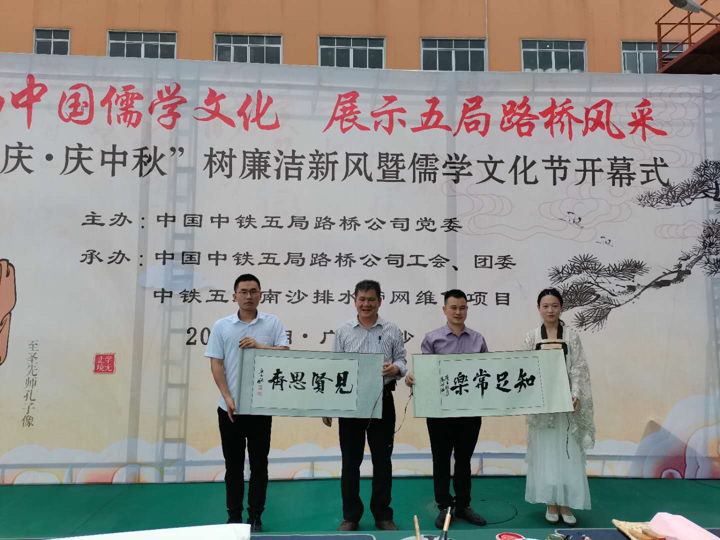 【香港商報網訊】記者 李苑立 報導:9月28日上午,記者走進廣州南沙東涌鎮中鐵五局管網項目工地,一幅幅蒼勁有力的孔子經典名句書法作品映入眼帘。項目經理李秀德告訴記者,在中秋、國慶「雙節」來臨前夕,工地特地在孔子誕辰日(9月28日孔子誕辰日)邀請知名書法家來到工地為一線職工揮毫潑墨,激勵員工把失去的時間奪回來,確保年內的建設任務如期完成。