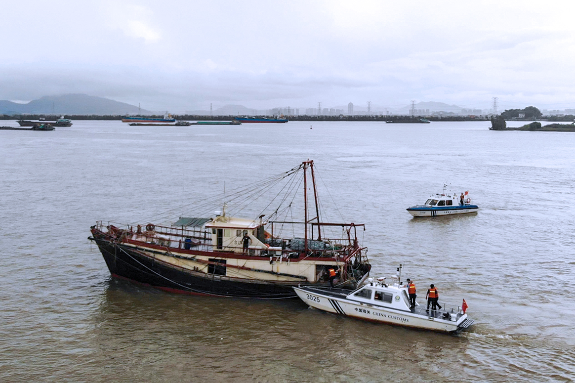 9月19日13時25分,珠海市發佈雷雨大風黃色預警。此時,拱北海關緝私局派出的兩艘緝私艇已經在暴雨傾盆的磨刀門水道埋伏了一個小時,水上行動小組耐心等待着一艘港澳流動漁船的出現。雨越下越大,水面能見度不足50米,緝私警察冒雨在甲板上進行觀察。16時30分,目標船隻在雨中出現,指揮部一聲令下,兩艘緝私艇迅速採取包抄戰術將目標船隻截停。緝私警察即刻跳上了該船,並立即分頭跑向駕駛艙和生活艙,迅速控制住了船上的3名嫌疑人。其他陸上行動小組也同步展開抓捕行動。
