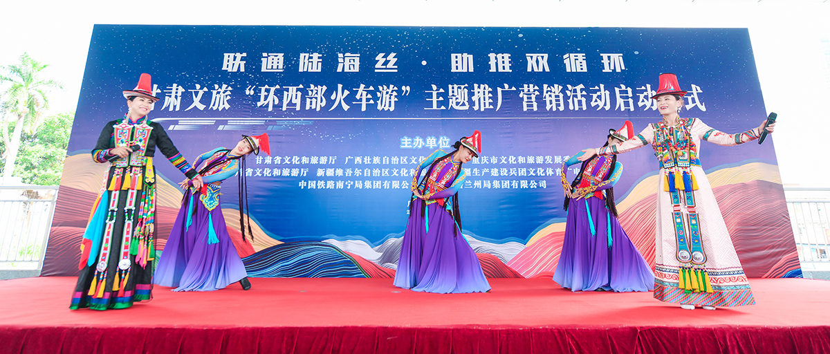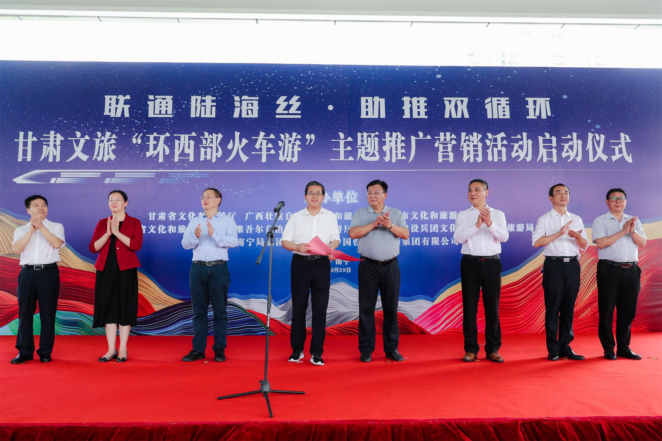 【香港商報網訊】9月29日,「環西部火車游」品牌專列從廣西南寧市駛出。當天,由甘肅省聯合廣西、重慶、四川、新疆等文旅部門共同組織的「聯通陸海絲?助推雙循環」——「環西部火車游」主題推廣營銷活動在南寧市啟動。