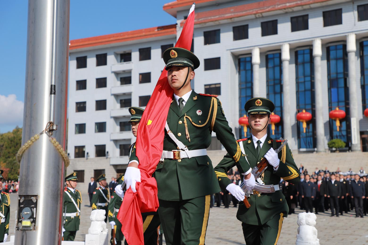 10月1日上午8時,在百年口岸綏芬河,在打贏防控境外輸入疫情阻擊戰階段性勝利的今天。綏芬河自貿片區舉行慶祝新中國成立71周年升國旗儀式,向國旗敬禮,向祖國告白。全市各界近萬名黨員幹部群眾、駐綏部隊官兵、醫務工作者,在黨政辦公中心廣場、旗鎮廣場、國門口岸、人民醫院、邊防哨所、抵邊村屯等地,同時升起國旗,表達對偉大祖國的真誠熱愛,謳歌新中國成立71年來取得的豐功偉績。