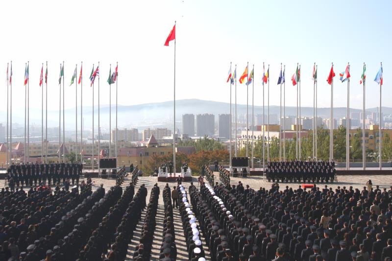 黃士偉、王永平、高寶平、李敬國等市級四個班子領導與各界代表一起,在綏芬河黨政辦公中心廣場參加升旗儀式。