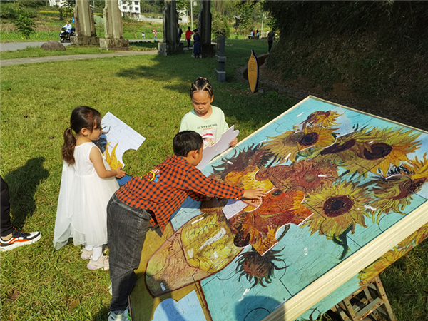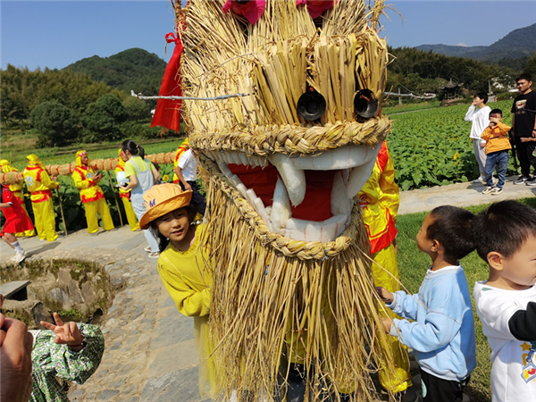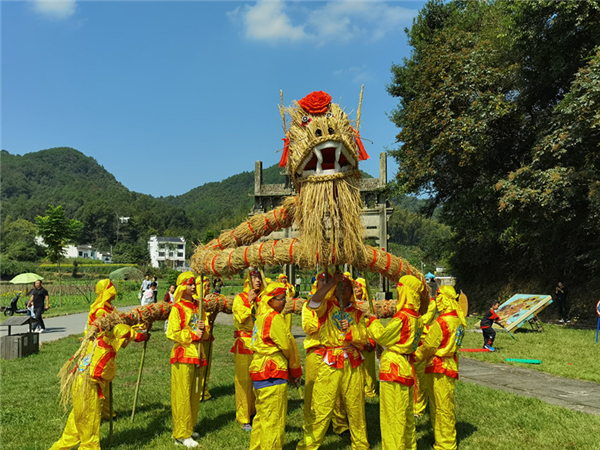 活動中,遊人穿梭葵花間,漫步於景區小路之中,微風拂過,移步換景,收穫著返璞歸真的自然神韻。同時,花田遊藝(熊出沒)、梵高的向日葵、後備箱市集、葵花射手、九宮格打卡等節目環節登場,給遊客帶來了一場豐富的旅遊大餐,而具有近千年曆史的傳統民俗活動-舞草龍更是將節日氛圍推向了高潮,草龍在村民的簇擁下舞動在花海之間,時而騰空疾飛,時而逶迤蛇行,在陽光的映襯下,龍身千姿百態、熠熠生輝,吸引了大量遊客前來合影拍照。