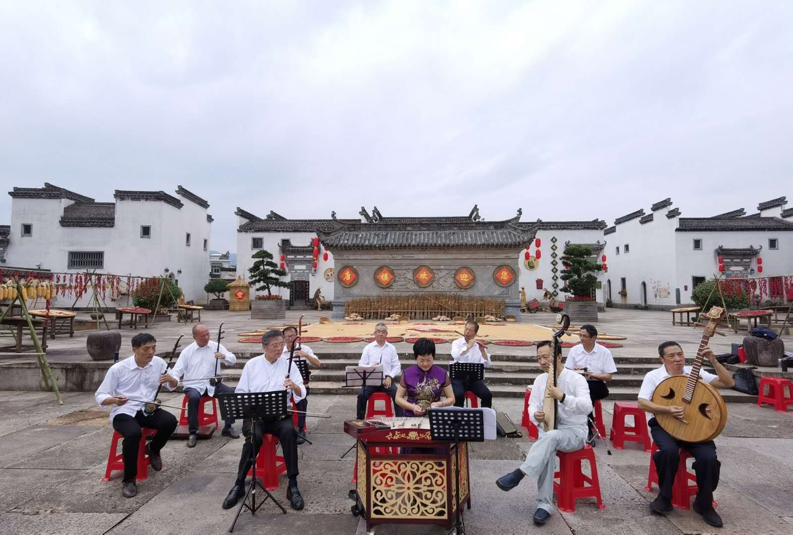 【香港商報網訊】小橋流水,琴瑟和鳴,10月3日,在安徽黃山市徽州區潛口鎮唐模七天井廣場,一場別具特色的國樂演奏會正在上演,優美的曲調從古箏、笛子、琵琶、二胡等傳統樂器中傳揚而出,與身後的曬秋景色共同形成了一幅美麗的秋日畫卷,讓廣大遊客如同置身秋天童話裏一般,如癡如醉。