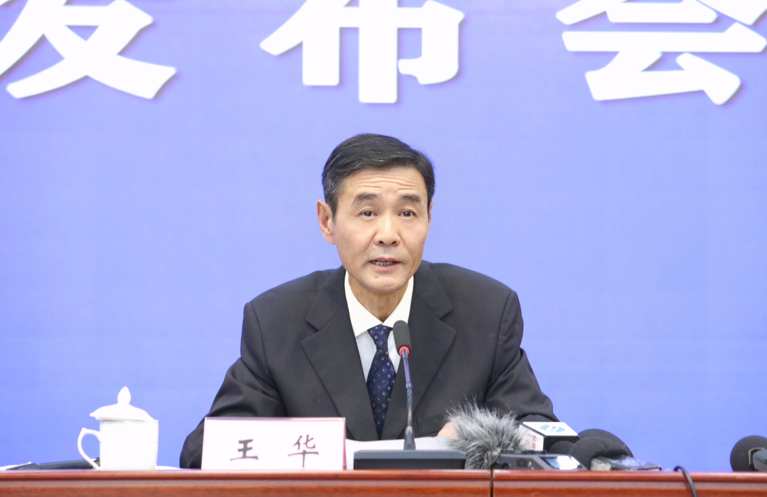 中國安徽名優農產品暨農業產業化交易會組委會秘書處副主任、安徽省農業農村廳副廳長王華介紹相關情況並答記者問(孫軍/攝)
