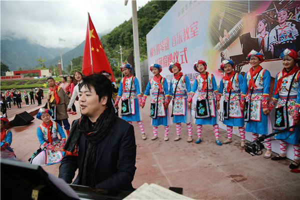 捐贈儀式上,西藏羌納鄉小學的學生們帶來了藏族特色舞蹈《扎西羅亞》,展現了民族文化的豐富多姿;汶川特殊教育學校的師生帶來節目《祖國我想悄悄對您說》,表達對祖國的熱愛與祝福。郎朗還與羌族學生四手聯彈《四小天鵝圓舞曲》,親切地鼓勵小朋友繼續加油,在音樂的陪伴下快樂成長。