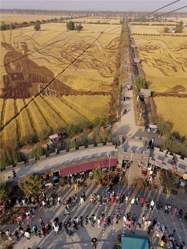 稻夢空間景區內的稻田畫出現在電影《我和我的家鄉》中最後一個故事《神筆馬亮》中,其中那幅壯觀的火車稻田畫讓人印象深刻。「每年我們種植的稻田畫內容都不一樣,這一幅是為了電影拍攝特意種植的,很多人是看了電影之後特意過來,相比於往年,今年外地遊客會更多一些,大家都是專程來打卡的。」景區工作人員介紹說。