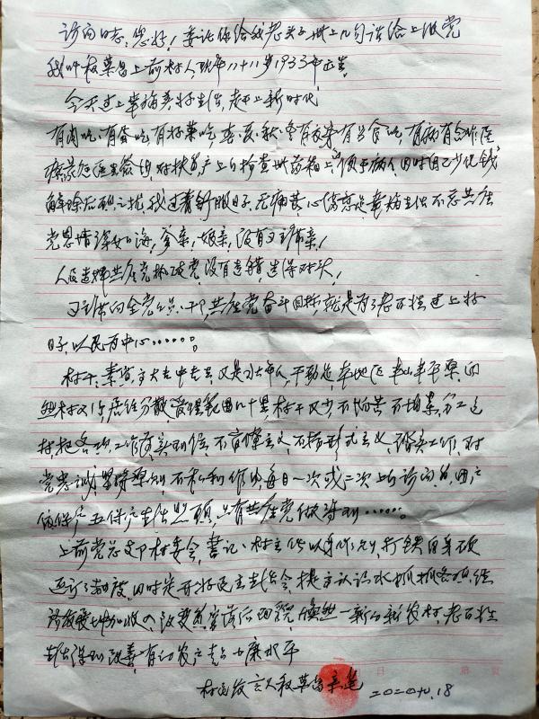 【香港商報網訊】近日,皖黄山市休寧縣扶貧開發局收到該縣渭橋鄉上前村貧困老人程榮昌寫的一封感謝信,表達了對黨和政府的感激之情,稱自己趕上新時代,過上了幸福美好生活。